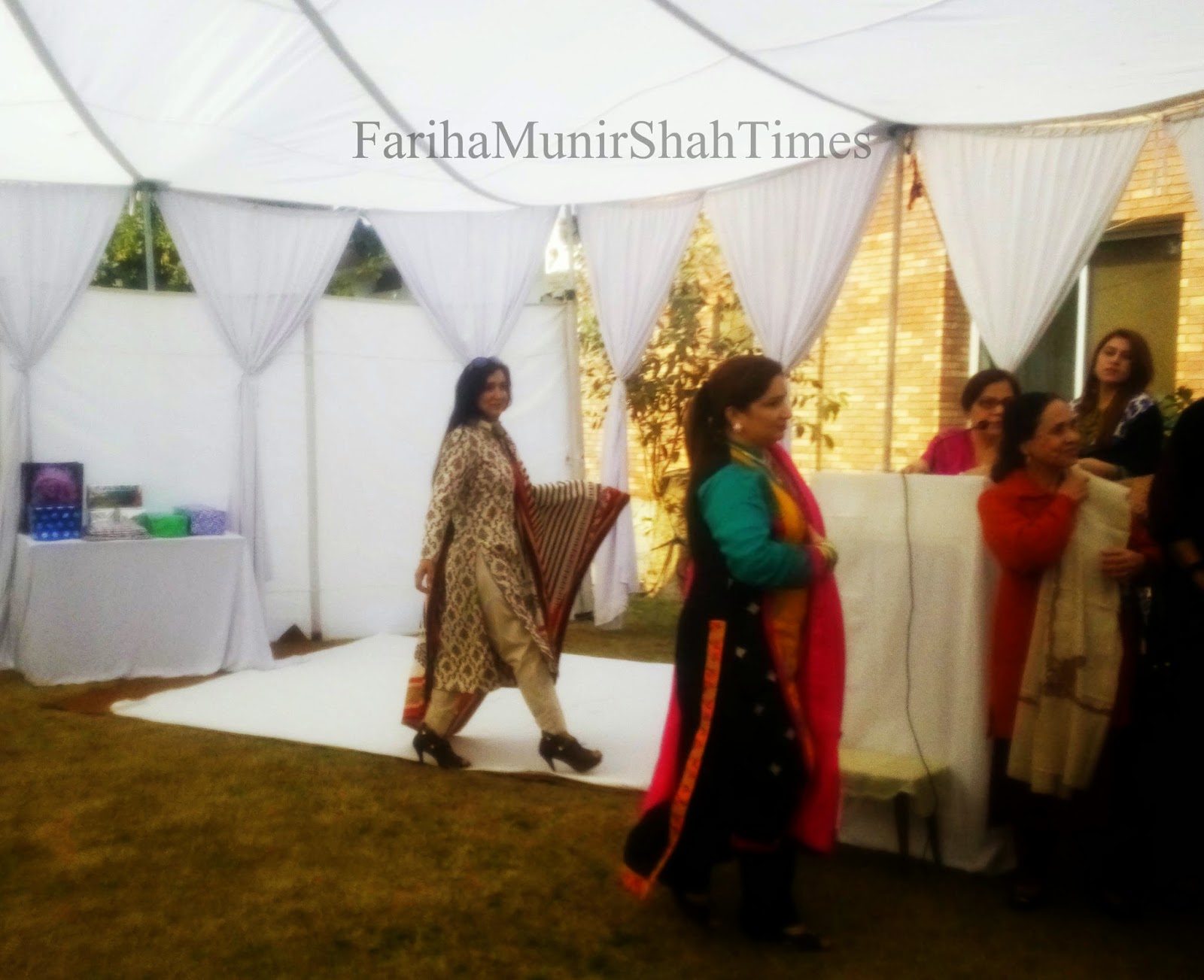 | Farrah Khwaja during the catwalk, Shahnaz Iqbal finishing it. |